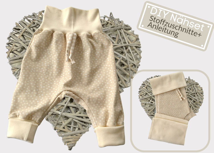 Fabric cuts plus instructions DIY sewing kit baby bloomers sewing jersey dots beige plus cuffs gift baby