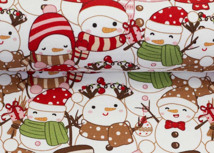 Holly Swafing Weihnachtsstoff, Sweatstoff mit Schneemännern all over für Weihnachtssweater