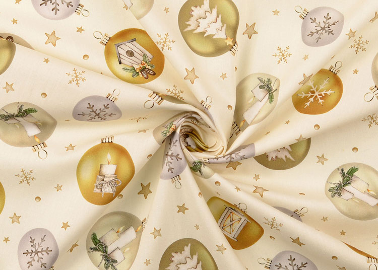 Mobile Preview: Weihnachtskugeln ecrufarben moderner Weihnachtsstoff auf Baumwolle Popeline