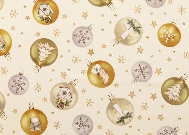 Weihnachtskugeln ecrufarben moderner Weihnachtsstoff auf Baumwolle Popeline