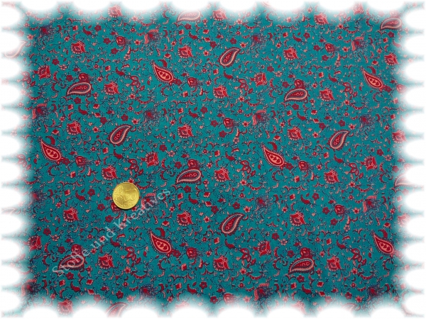 Elena Baumwolle Popeline dunkeltürkis Paisley _Stoffrest 42 cm reduziert