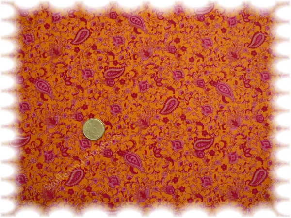 Elena Baumwolle Popeline orange Paisley _Stoffrest 40 cm reduziert