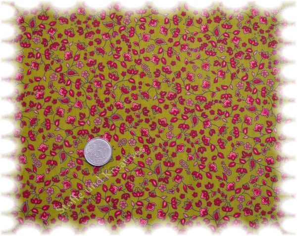 Evi Baumwolle Popeline grün Blumen _Stoffrest 48 cm reduziert