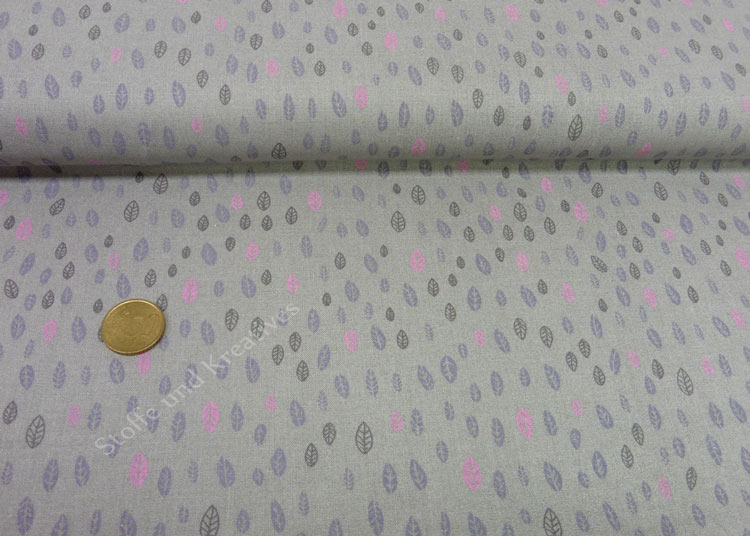 Leaves grau Baumwolle Popeline Webware Meterware Blätter Stoffrest 42 cm reduziert