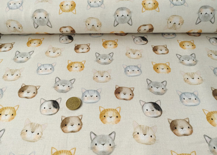 Carlo cream Sweatshirt fabric Hilco French Terry brushed with cat heads Children's fabric